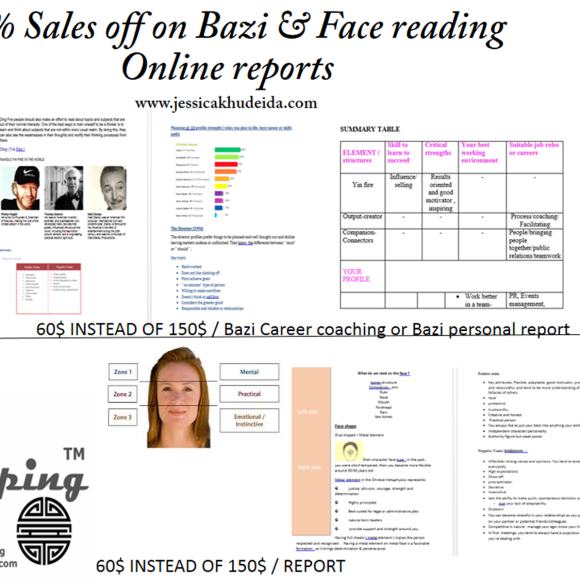 up to 60% off on Bazi career & Face reading online reports! Online secure payment