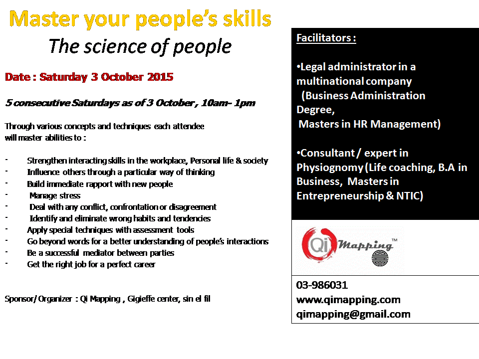 Upcoming workshop/course: Master your people's skills , the science of people.