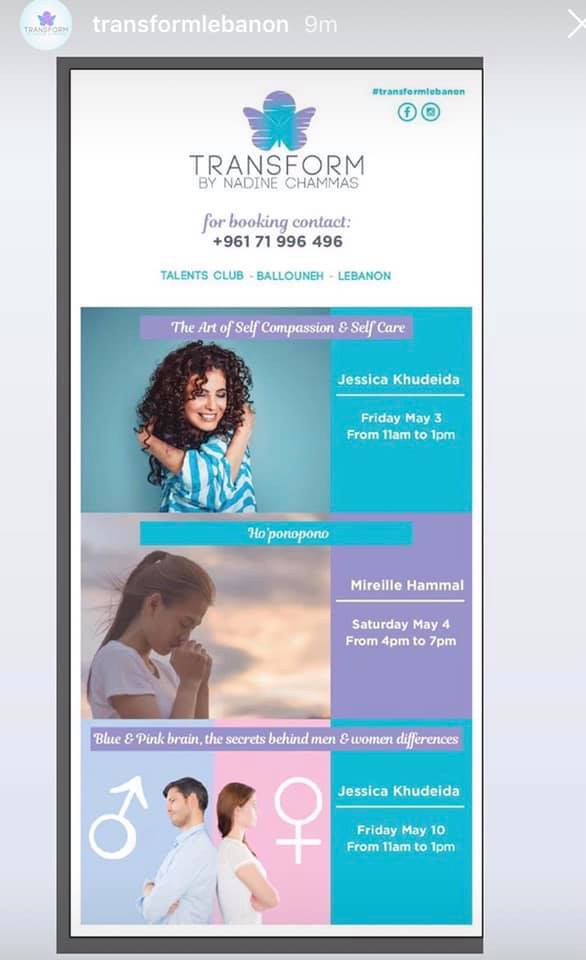 And on Fridays mornings, DURING MAY Month Jessica Khudeida will giving workshops in Ballouneh Transform Lebanon.